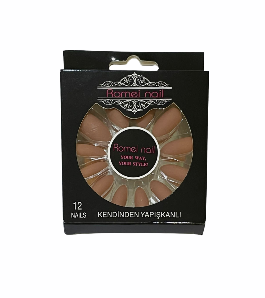 أظافر صناعية ذاتية اللصق (مطفي- لوزي) 12 قطعة