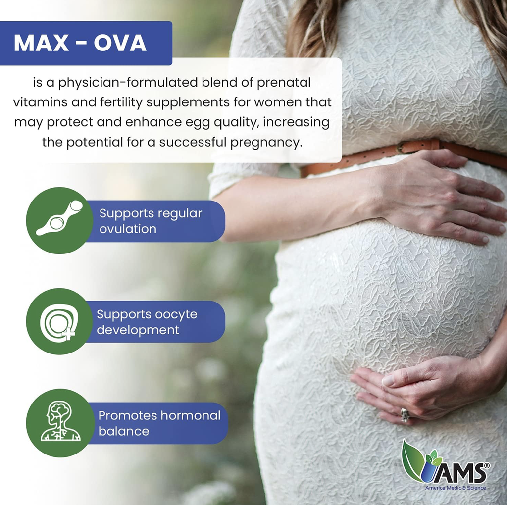 مبايض أكثر صحة: الإجهاد اليومي يمكن أن يقلل من فرصتك في الحمل. غني بمضادات الأكسدة مثل فيتامين E ومستخلص بذور العنب، يمكن أن يساعد مكمل Ova-Max في الحفاظ على مبايض أكثر أمانًا من الإجهاد التأكسدي.