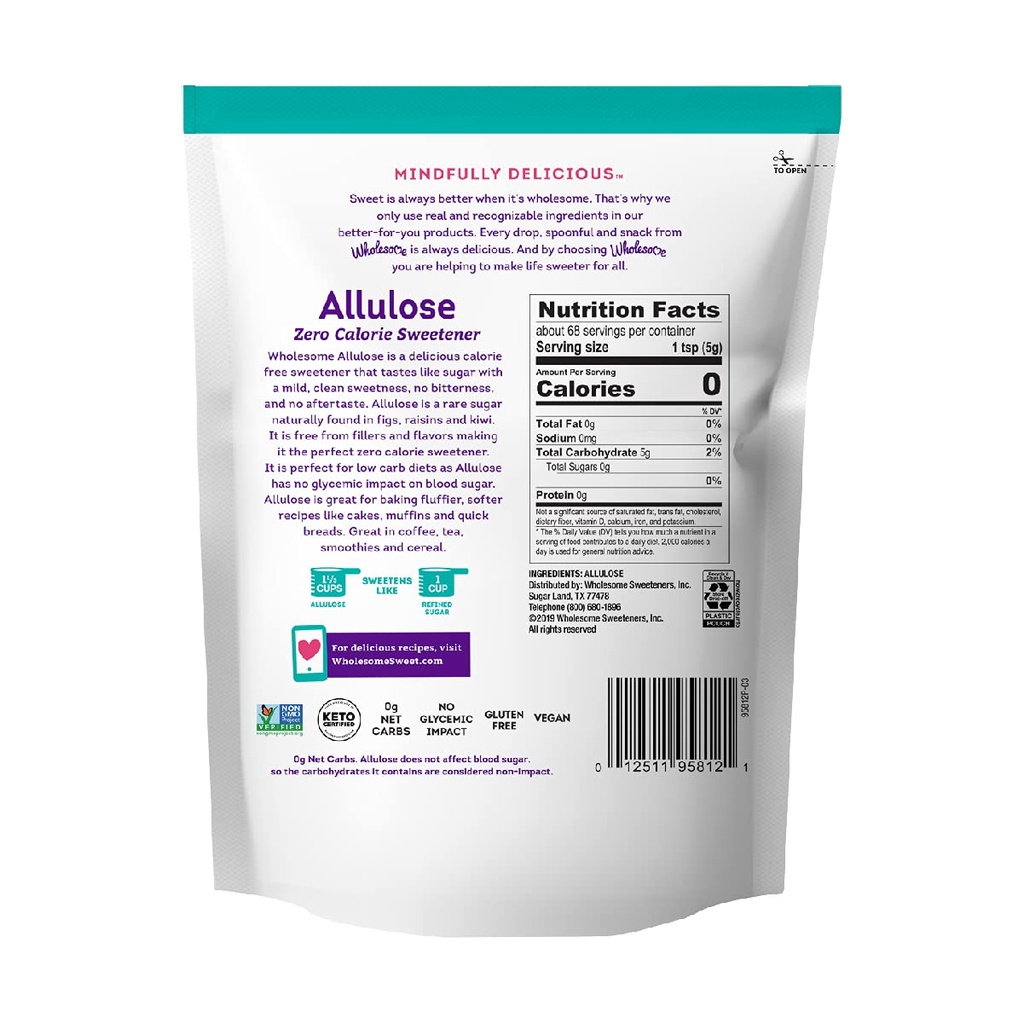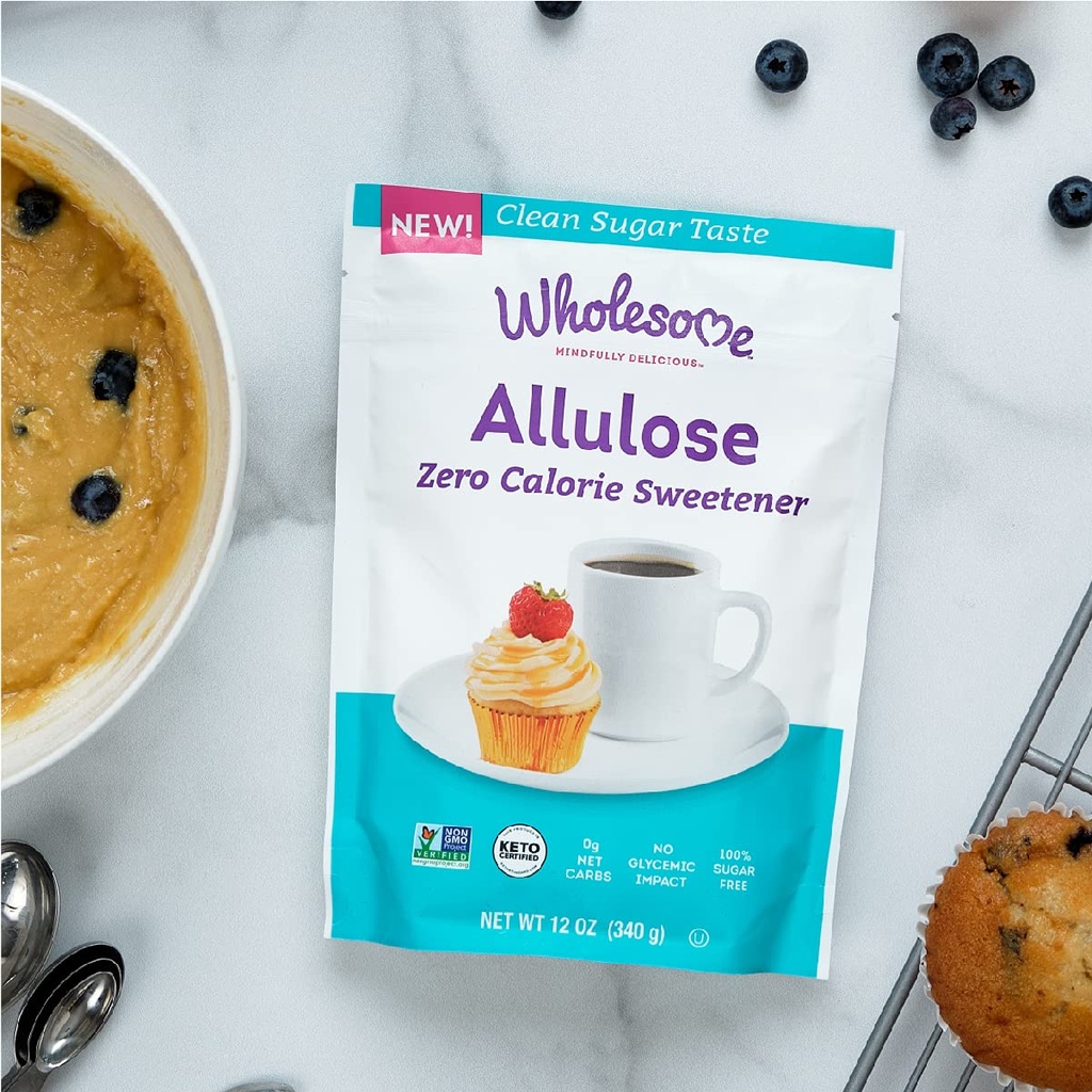 الاستبدال والتحويل: استخدم مُحلي الأليلوز من Wholesome’s كبديل للسكر للمشروبات المحلاة والحبوب والحلويات. الأليلوز لدينا هو أيضًا مُحلي كيتو بصافي 0 جرام من الكربوهيدرات. استبدل 1 1/3 كوب من مسحوق محلي من مسحوق الأليلوز بكوب واحد من السكر المكرر.