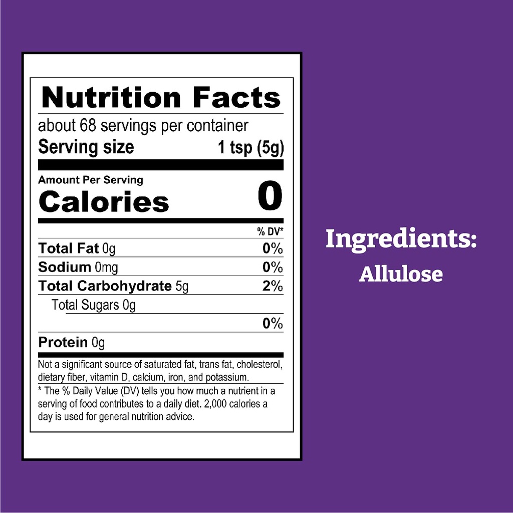 بديل منخفض الكربوهيدرات: يحتوي مُحلي الأليلوز على صفر سعرات حرارية ، وليس له تأثير نسبة السكر في الدم ، ولا يحتوي على كحول سكري ، وهو معتمد من كيتو.