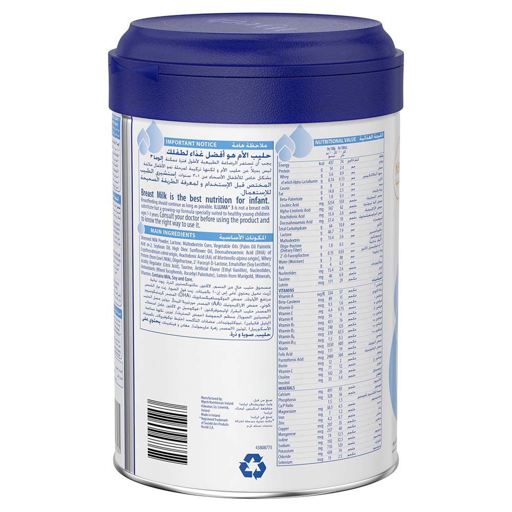 إلوما هو نتيجة أحدث بحث علمي في التغذية. تركيبته مستوحاة من الطبيعة للمساعدة على تعزيز نمو طفلك وتلبية احتياجاته الغذائية. لبناء عظام قوية، ذهن حاد وجهاز هضمي سليم، يجب أن يتمكن جسم طفلك من امتصاص واستخدام العناصر الغذائية. لهذا السبب يحتوي إلوما على الدهن النباتي اس ان2 بالميتات. هذا الزيت المفيد يساعد في امتصاص العناصر الغذائية ومركب أوليجوسكريد من حليب الأم HMO لتعزيز المناعة. إن حليب الأم هو الغذاء الأفضل للمواليد ويجب أن تستمر الرضاعة الطبيعية لأطول فترة ممكنة. استشيري طبيبك قبل استخدام هذا المنتج لمعرفة الطريقة الصحيحة لاستخدامه. غير مناسب للأطفال تحت سن 6 شهور.
