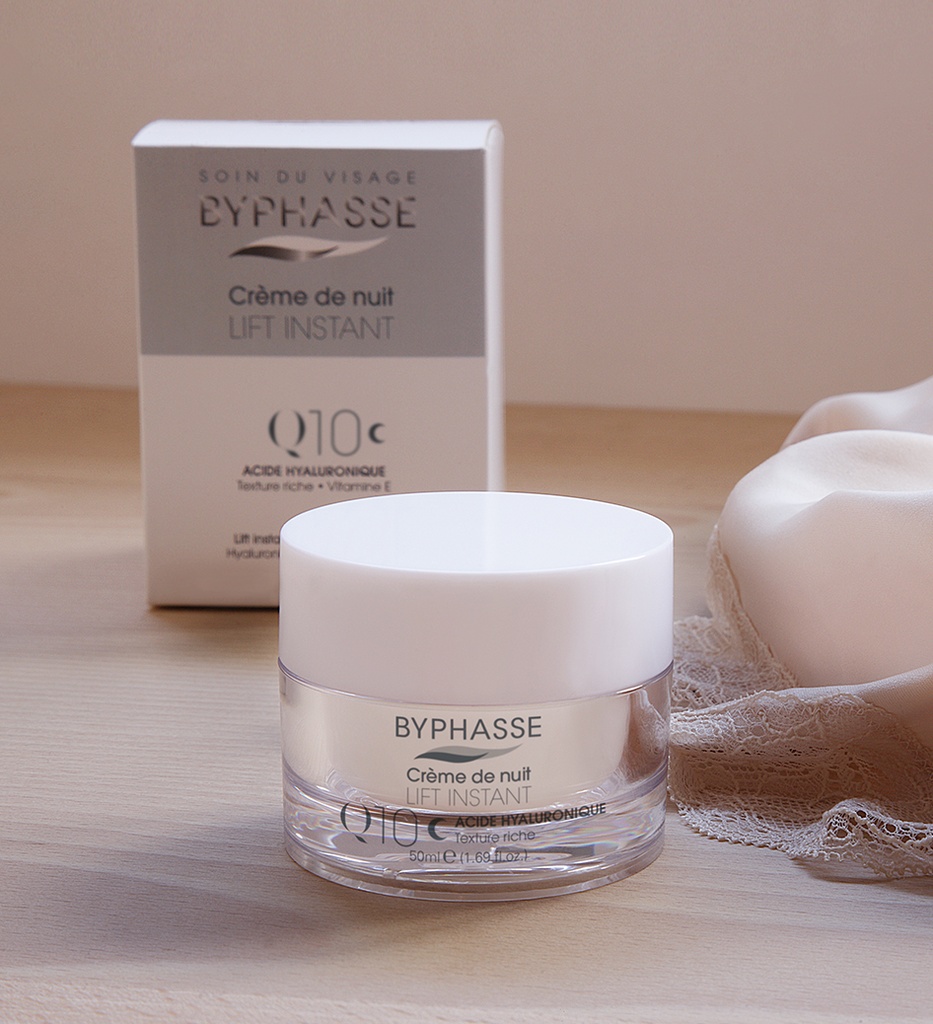 Adopt a “beauty routine” thanks to our new line of face creams: 24h and Q10. The BYPHASSE Instant Lift night cream combines the effective Q10 coenzyme active agent for firming skin with hyaluronic acid that improves skin elasticity.