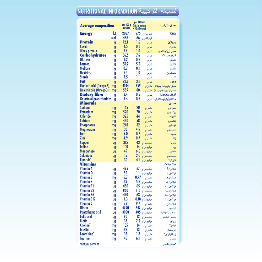 contains: All the essential micro-nutrients - Vitamins and minerals - to ensure a healthy growth. Balanced Omega-6 and Omega-3 ratio to continue providing support for the development of cognitive and visual functions. GOS Prebiotics to help strengthen immunity. Enriched with Iron and Vitamin D. Humana's milks are the only infant milks produced 100% in Germany. They are subject to strict controls to guarantee safety and quality. They are especially composed for age-adapted nutrition.