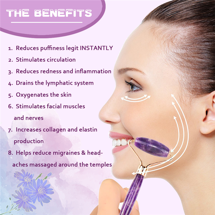 √ Incredible Benefits: This anti-aging Jade Roller Massager helps improve blood circulation, skin tone, elasticity of the skin, and lymphatic drainage.It also relaxes skin and reduces puffiness, wrinkles, dark circles, and eliminates toxins.For better results, you can combine the rolling with facial serums ,or cream,or masks.