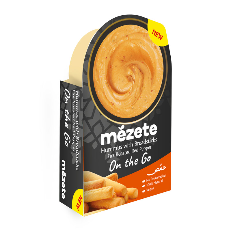 MEZETE Hummus with Fire Roasted Red Peppers and Go with Bread Sticks 92 gm