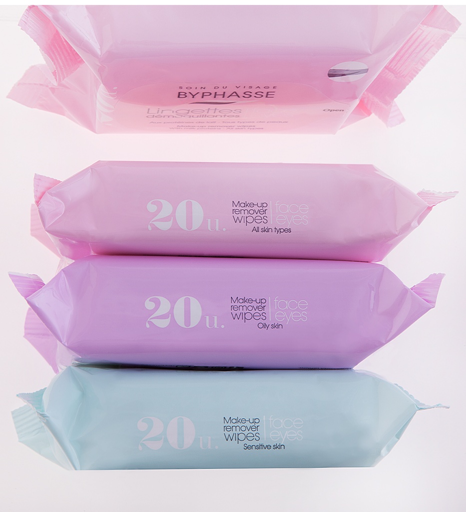 Use BYPHASSE make-up remover wipes for quick and efficient one-step cleansing, while caring for your skin.They contain moisturising and toning milk proteins. All make-up residues are removed.