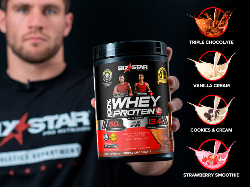 Six Star 100% Whey Protein Plus is the best choice to help support recovery, deliver immune system support, and fuel training. Packed with scientifically researched key ingredients that build more muscle and increase strength, this formula has 60g of protein per 2 scoops and a clinically studied dose of NordicCherry®, which was shown to increase muscle recovery and help maintain muscle function and strength. The pros trust us for the superior muscle and strength building nutrition they need to keep killing the grind. This potent formula features 100% whey protein with BCAAs for amplified muscle performance and recovery.